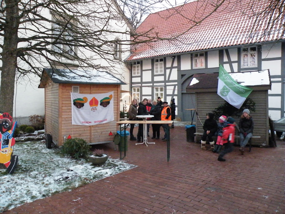 Anschließend gab es am Gemeindehaus leckere Süßigkeiten in kleinen Tütchen für alle Kinder und Jugendlichen vom TV Reelkirchen und dem Nikolaus.