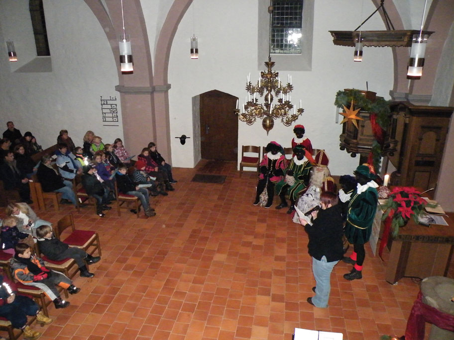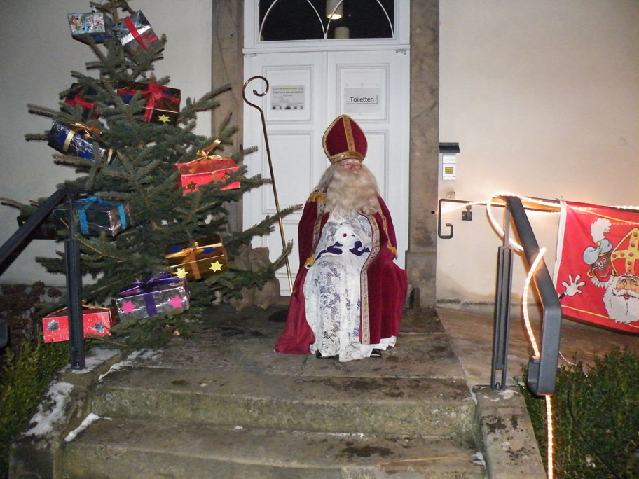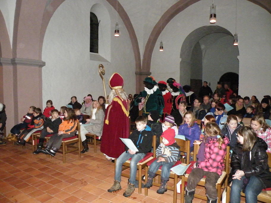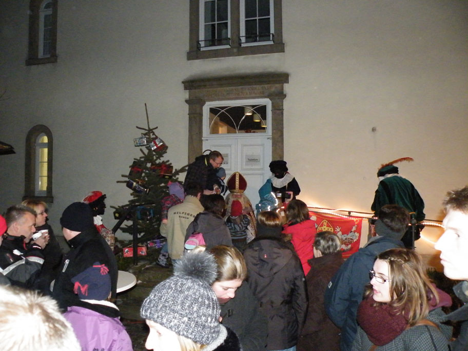 Gegen 17:00 Uhr zogen wir mit den Kindern, Jugendlichen und Eltern in die festlich angestrahlte Kirche ein und trafen dort den Nikolaus mit seinen „Pieten“. Gemeinsam wurden Weihnachtslieder gesungen und wir hörten die Geschichte des Nikolaus.