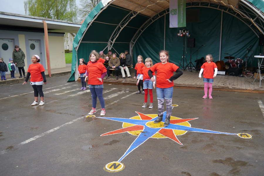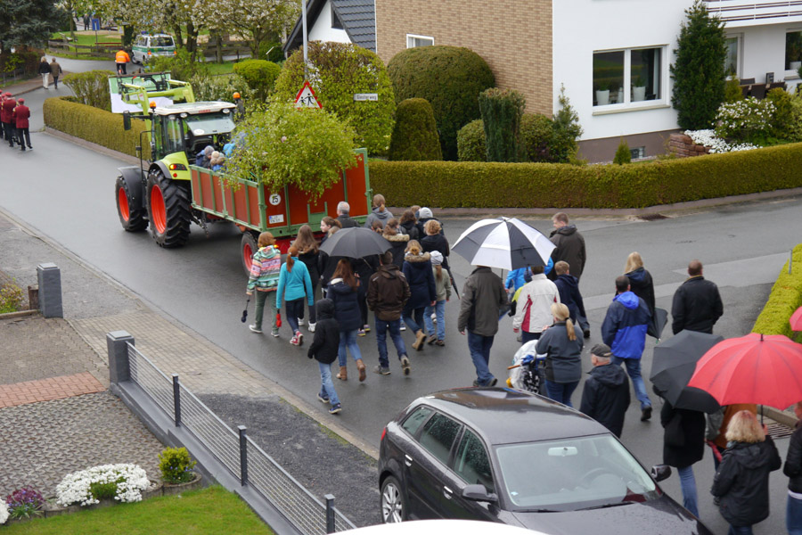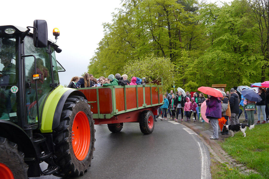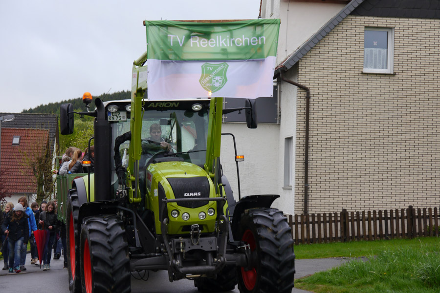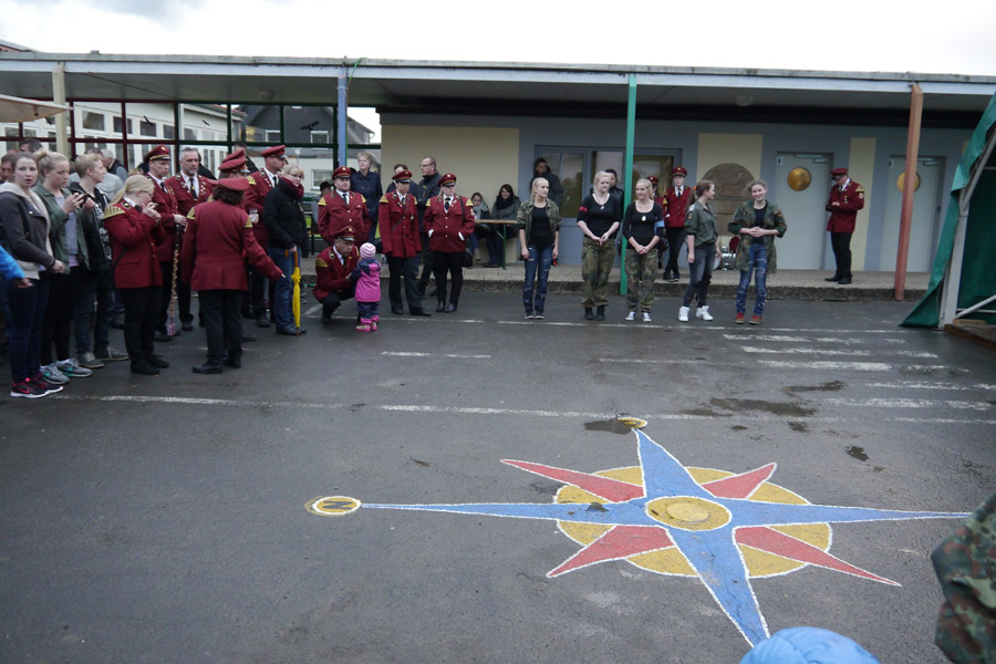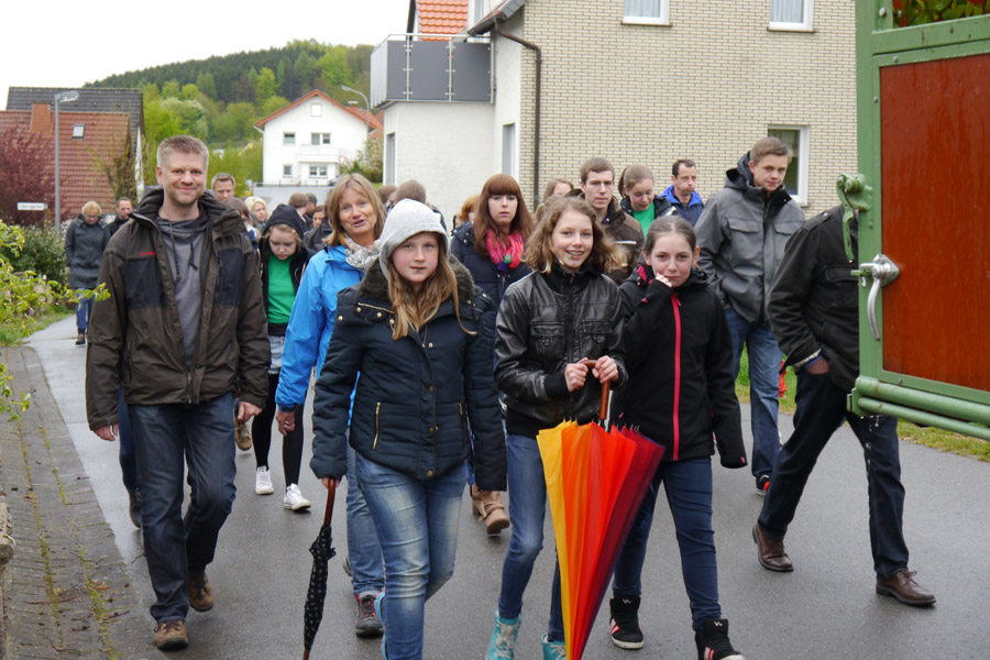 „Das Wetter war schon einmal besser am 30.04.“, hörten wir oft an diesem Abend. Leider – oder besser „Gott sei Dank“ – haben wir darauf keinen Einfluss. Mit kurzer Verspätung begann unser Umzug auf dem Spielberg. Der Spielmannszug und viele Kinder trotzten dem nassen Wetter und so erreichten wir gegen 19:00 Uhr in einer großen Gruppe den Schulhof. Nachdem der Maibaum geschmückt und aufgestellt wurde, erfreuten uns die jungen Tänzerinnen der Videoclip-Dancing-Gruppen mit ihren neuesten Stücken.