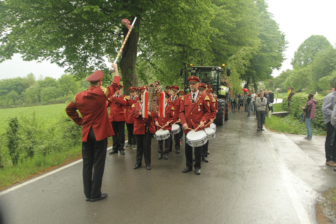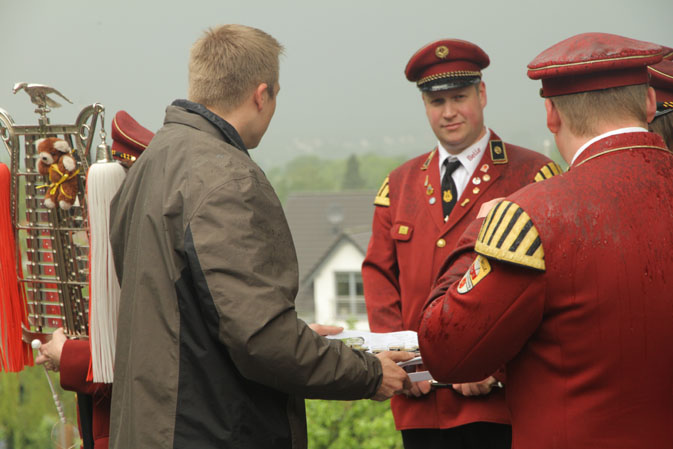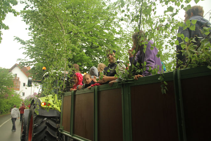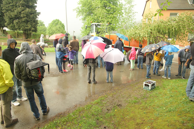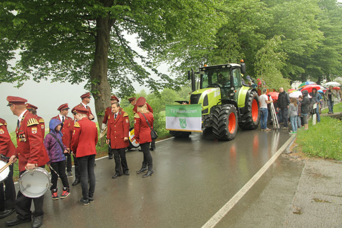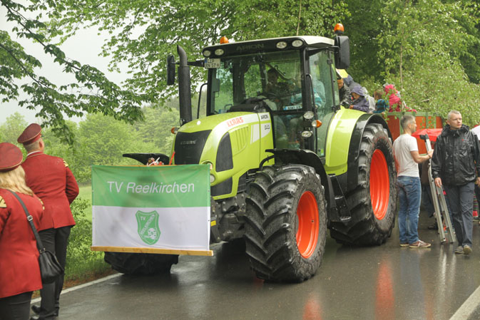Unser Maibaumfest startete in diesem Jahr mit einem Donnerwetter! Pünktlich um 18:00 Uhr mussten wir zum ersten mal seit Jahren uns gegen Regen, Blitz und Donner schützen und konnten erst mit Verspätung unseren Umzug durch Reelkirchen starten.