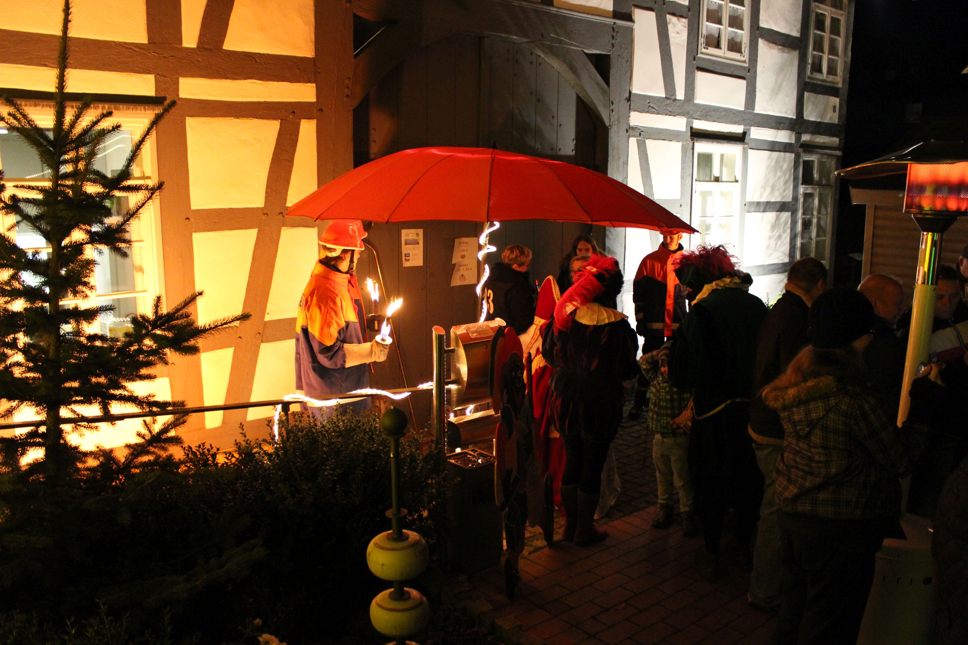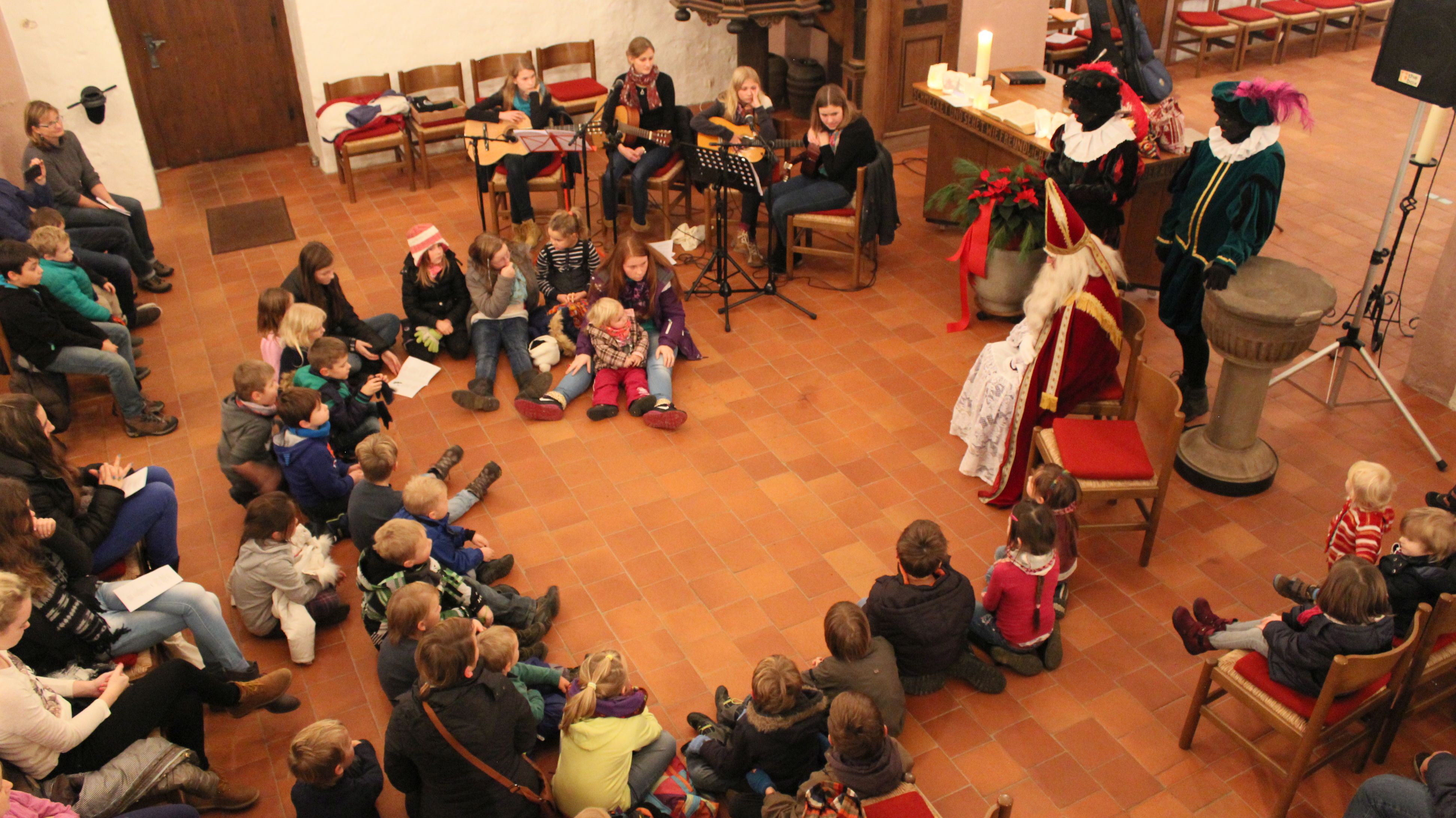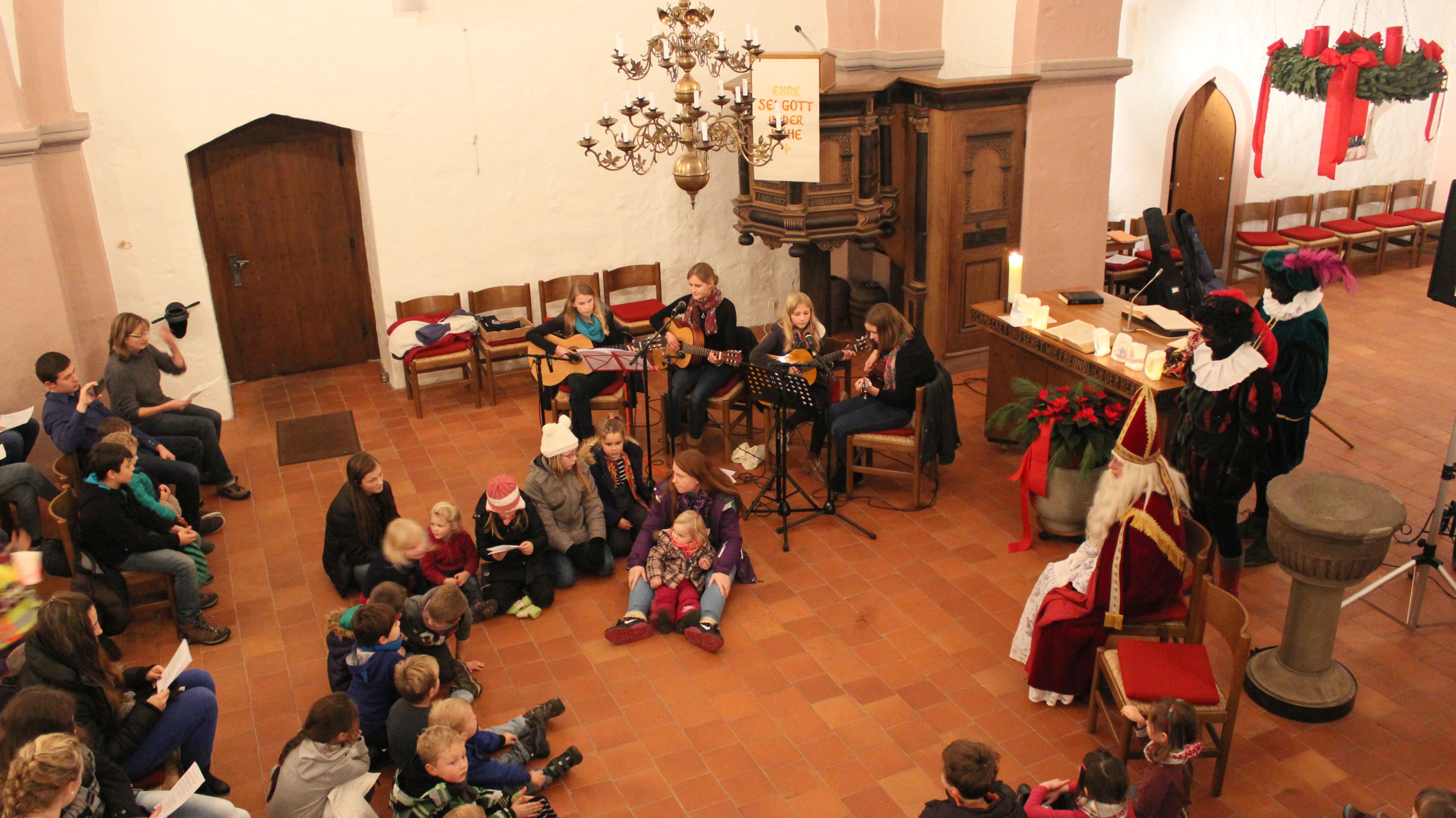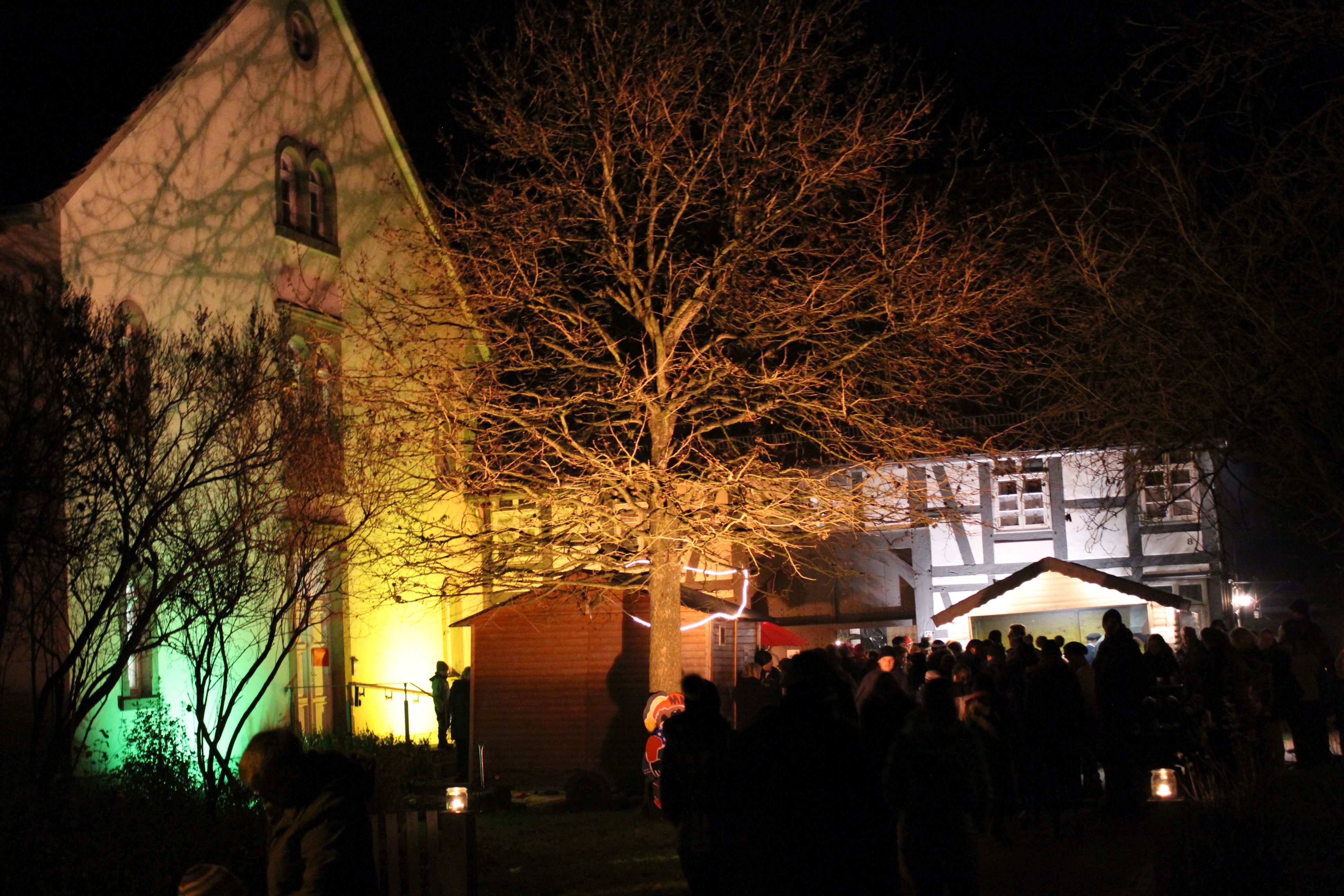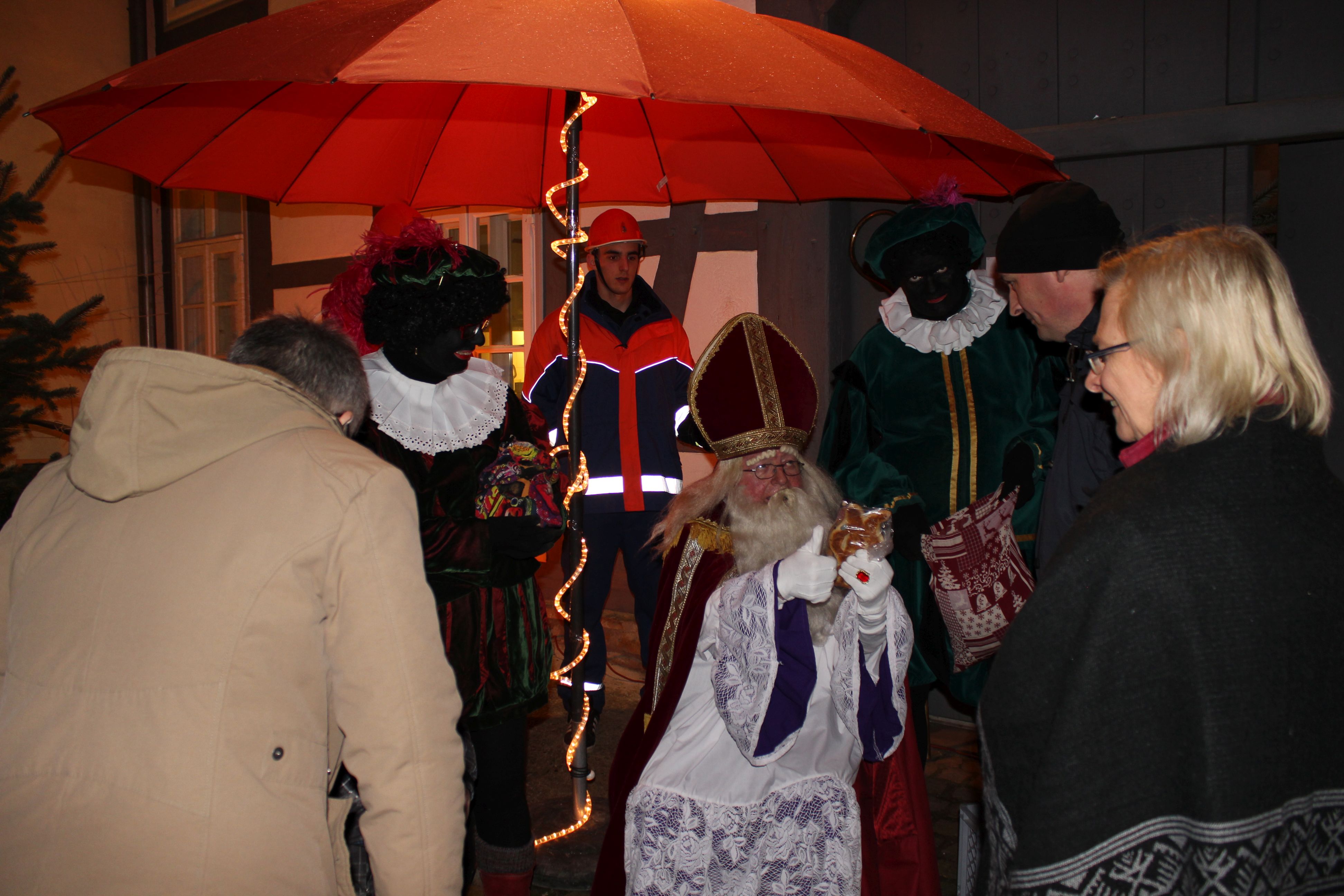 Unser Winterzauber hatte wieder viel zu bieten. Um 15:00 Uhr öffneten sich die Türen des Gemeindehaus zu Kaffee und Kuchen. Die Kinder konnten im warmen Gemeindesaal mit Maike basteln. Um 17:00 Uhr betrat der Nikolaus mit seinen zwarten Pieten die voll besetzte Kirche. Gemeinsam wurden Weihnachtslieder mit Unterstützung des Gitarrenkreises gesungen und Gedichte vorgetragen. Die Jugendfeuerwehr Herrentrup begleitete mit leuchtenden Fackeln anschließend alle Besucher aus der Kirche zurück zum Gemeindehaus. Hier erhielt jedes Kind ein kleines Geschenk vom Nikolaus und es wurden viele Erinnerungsfotos gemacht. Im Hintergrund erstrahlte die Kirche erneut in einem besonderen Licht. In diesem Jahr haben wir zum ersten Mal auch das Gemeindehaus illuminiert. Der Winterzauber klang harmonisch in weihnachtlicher Atmosphäre bei heißen Getränken, Bratwurst vom Grill sowie Stockbrot für die Kinder aus.