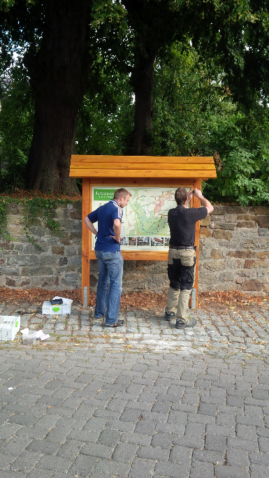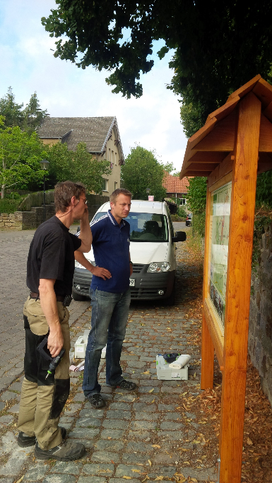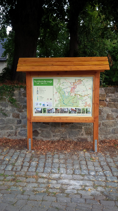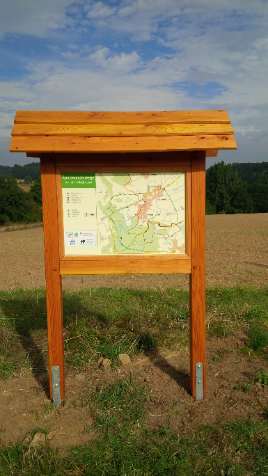 Warum sollten wir nicht eigene Wanderwege in unterschiedlichen Längen und Anforderungen ausweisen und eine Übersichtskarte anbringen? Zusätzlich könnten wir auf die Schönheiten unseres Ortes mit Bildern hinweisen.
