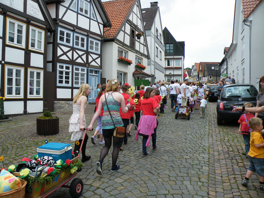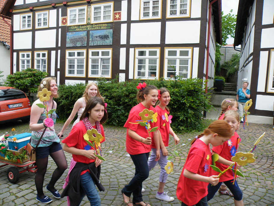 Unsere Videoclip-Dancer der „Tanzteufel“ haben dieses Jahr am großen Blomberger Blumencorso im Rahmen des Nelkenfestes teilgenommen. Gemeinsam mit der Übungsleiterin Lena Günther hatten die Mädchen sichtlich Spaß beim Umzug.